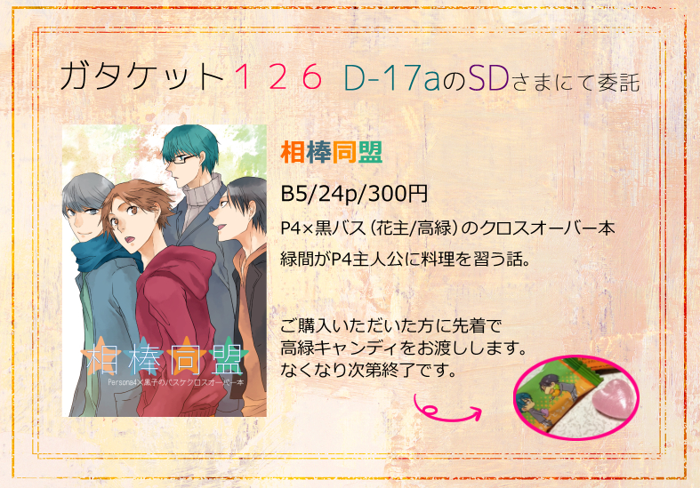 ガタケット126にて、1月に発行した「相棒同盟」をひかるさんに委託していただける事になりました。
